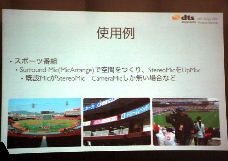 スポーツ番組での使用例。実際に広島球場のこけら落とし中継でNeural Surroundが使用された