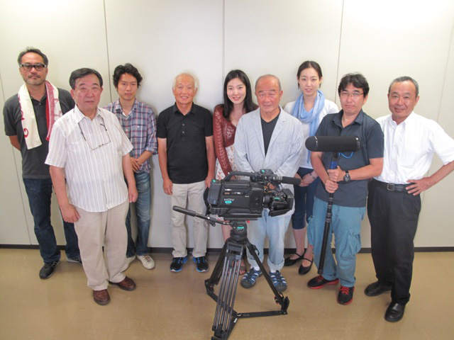 「ミンヨン 倍音の法則」関係者 右より はらだたけひで氏(企画・プロデュース)、仲田良平氏(録音)、ソン・ミンヨン氏(出演)、佐々木昭一郎氏(監督)、ソン・ユンヨン氏(出演)、吉田秀夫氏(撮影)、旦部辰徳氏(出演)、岩崎進氏(音響)、渡辺栄二氏(シグロ)(C) 2014 SIGLO / SASAKI FILMS