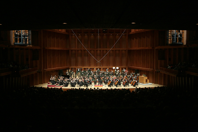 2014年1月17日のコンサートの様子。写真左右の上の方で吹いているのが「バンダ」(C)飯島隆
