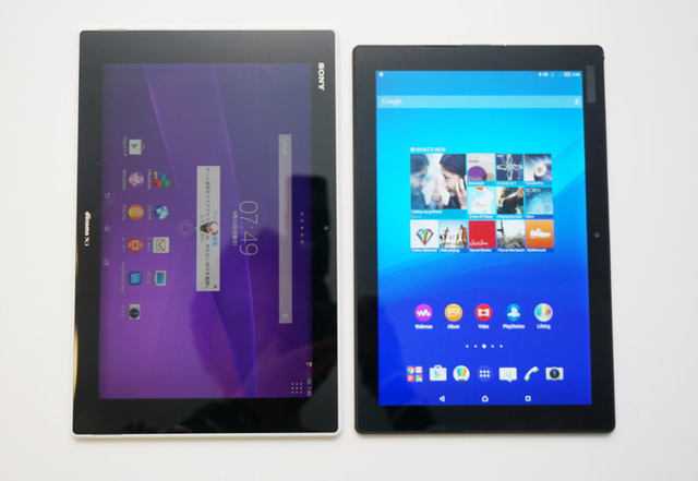 左側Z2 Tabletと右が新しいZ4 Tablet。同じ画面サイズながら、フレームを狭くして本体サイズのコンパクト化を図った