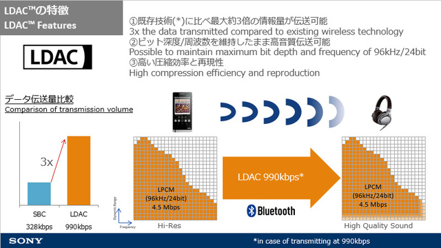 LDACではSBCに比べ最大約3倍のデータを伝送できる