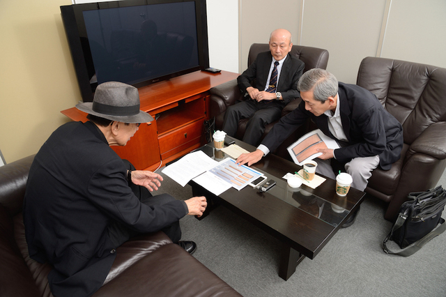 PC-Triple Cの結晶構造やオーディオ的効果について意見交換をする三氏