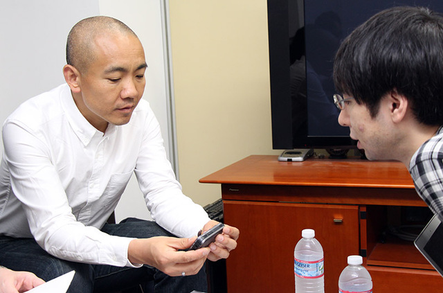 起動の速さを高橋氏にデモするシャオ氏