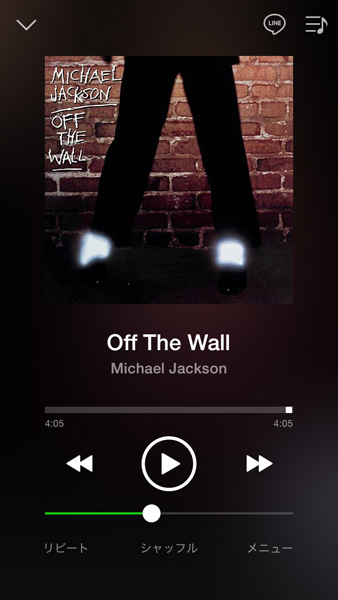 LINE MUSICで再生中の画面