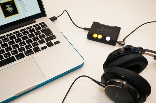 MacBook ProとUSBでつなぎ、ATH-MSR7との組み合わせで音質をチェックした
