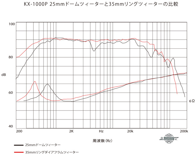 【図6】25mmドームトゥイーターと35mmリングトゥイーターの比較