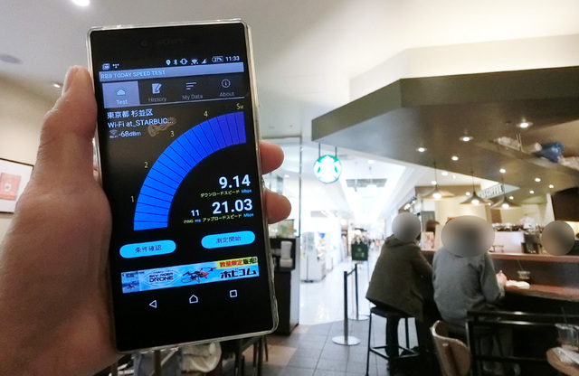 スターバックスコーヒーのWi-FiにつないでPrimeSeatを聴いてみた。ダウンロードスピードはだいたい6〜7Mbps前後