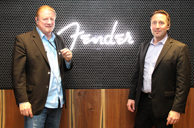 フェンダーのオーディオ事業部 ヴァイスプレジデント Jim Ninesling氏(右)、Aurisonicsの創始者であり、Fenderに合流したDale Lott氏(左)