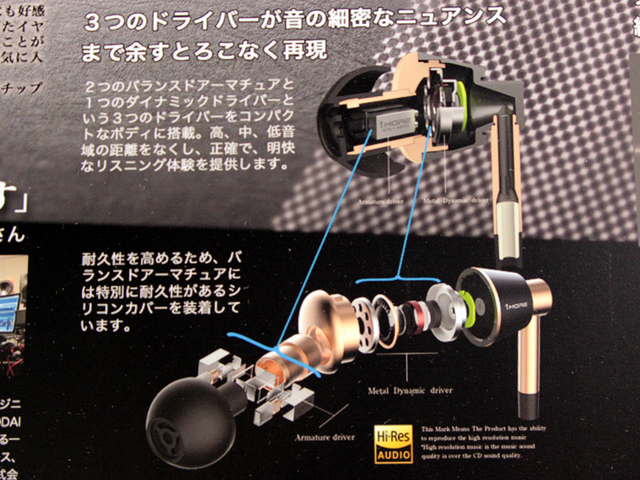 E1001は2BA+1ダイナミックの3ドライバー構成。BAドライバーも自社で開発したもの