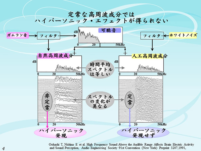 人工的な高周波成分でなく、自然の、一種フラクタルな構造を持った高周波でないと効果は得られないという