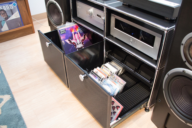 ラック下部は引き出しになっており、LPやCDが収納可能
