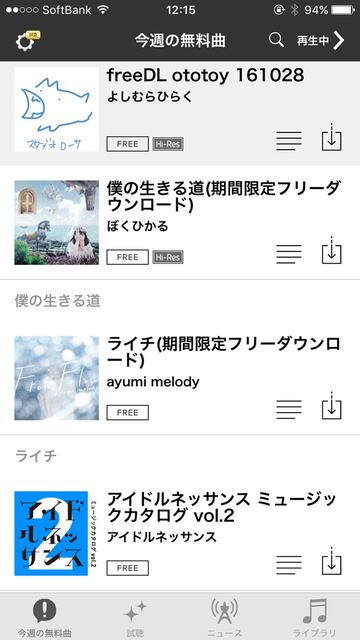 週ごとに用意されるフリーダウンロード楽曲達。OTOTOYアプリには、スマホで良い音を聴く意義を体験できる仕掛けが随所に施されている