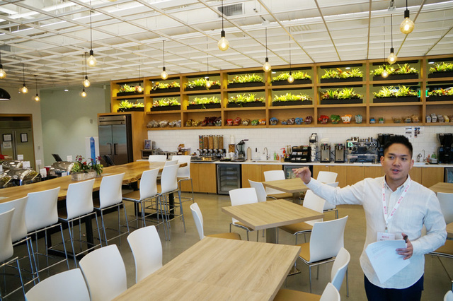 それぞれのビルにリッチなカフェテリアがある。真新しいビル「F」のカフェテリアは壁にオリジナル作品のキャラクターをペイントしている