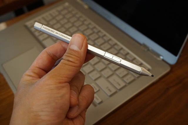 ディスプレイ側側面にマグネットで吸着させられる専用のスタイラスペンが付属する