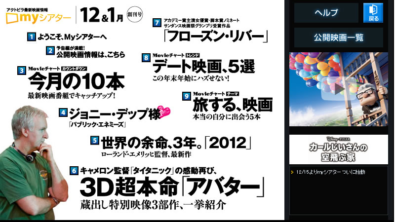 「myシアター」トップ画面