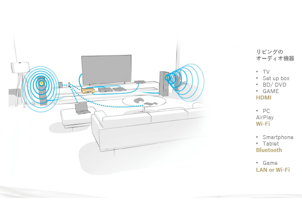 NR1608の使用イメージ。リビングのあらゆるソースを統合する“コントロールセンター”として活躍してくれる