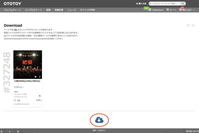 HOME > インタビュー > 記事 無料ダウンロードキャンペーンもスタート 従来とは異なるストリーミング音楽配信「OTOTOY Collections」。その魅力を竹中直純氏が語る 海上 忍 2018年02月06日 前の写真へ 次の写真へ 青いクラウドのマークをクリックするとダウンロードが開始される 前の写真へ 次の写真へ この写真の記事へ 関連リンク OTOTOY
