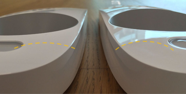 写真右はフロントパネルで、曲率の異なるサンプルを比較検討し、最善を目指すといった具合だ