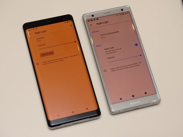 ブルーライトをカットする色合いに画面を調整できる「Night Light」は色の可変幅がXZ2よりも広くなっている