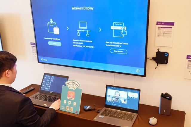 「InstaShow」のデモ。同一Wi-Fi上ではアプリを利用したワイヤレス接続も行えるという