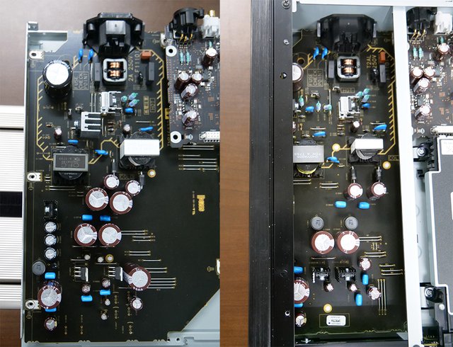 左がJapan Limited、右が欧州仕様の電源部。日本版は明らかに部品点数が多く、また大型のパーツを使っていることがわかる