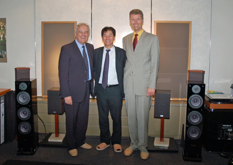 クリプトンの試聴室でHQMのサウンドを試聴した両氏。クリプトン 代表取締役 濱田 正久氏(中央)と記念撮影