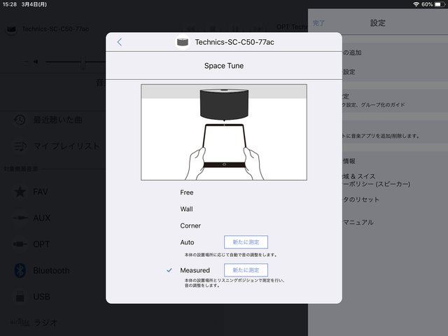 iPad版「Technics Audio Center」でSpace Tuneを実行しているところ