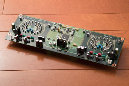 Grandioso D1Xに搭載される「Master Sound Discrete DAC」。斬新なデザインが施されていることが分かるだろう。抵抗やロジックIC、パワーサプライなどの各コンポーネントも、1つのエレメントに対し、1回路ずつ奢り、まさに贅沢に電流を流せるものを目指している