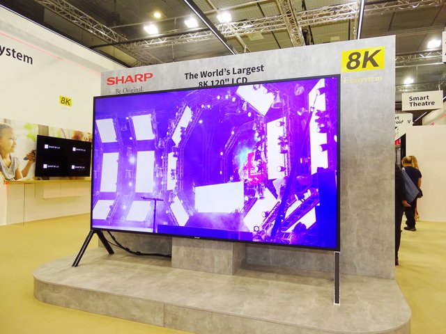 シャープは120インチの8K液晶ディスプレイを試作。ブースに展示した