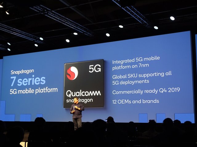 クアルコムの基調講演ではクリスチアーノ・アモン社長が5G対応のモバイル向けSoCをスタンダードクラスのラインナップにまで広げていくことを発表した