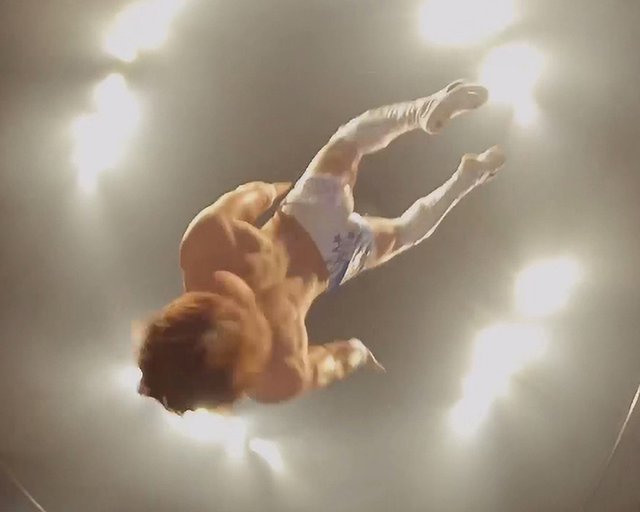 飯伏選手は体もバキバキのアスリートタイプ。飛ぶ姿も美しい…