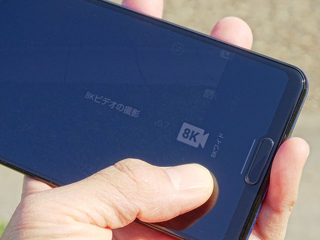 カメラアプリを起動して「8Kワイド」を選択すると8K動画撮影モードになる