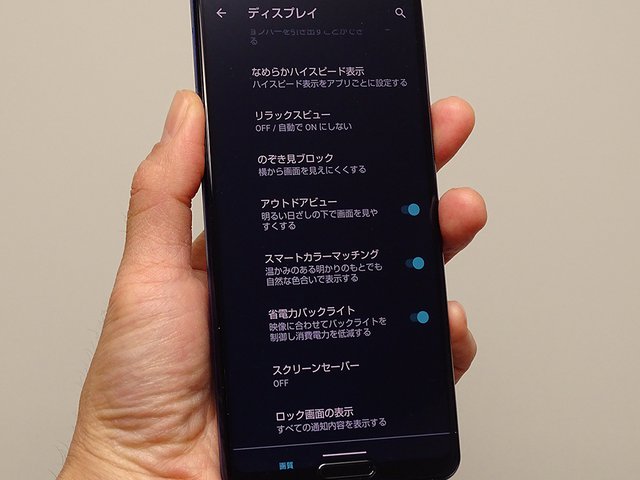 ディスプレイ設定の中にスマートカラーマッチングのほか、各種ディスプレイ設定のメニューが並ぶ