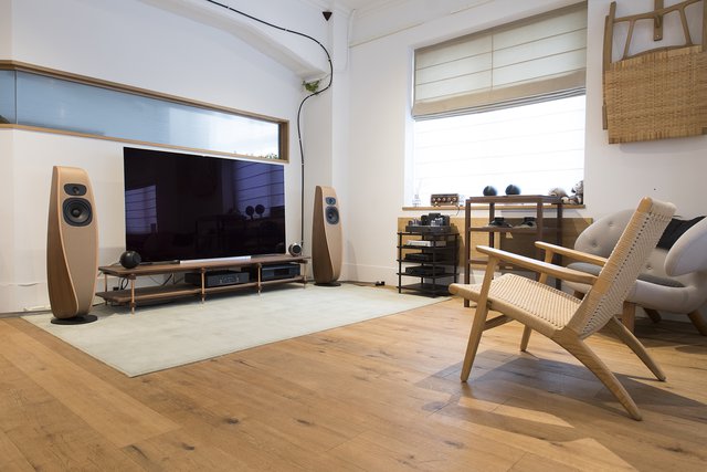 TVと組み合わせたスタイリッシュなリビングシステムも。LINNのDSMシリーズはHDMIを搭載しているため、リビングとの相性も抜群。スピーカーはDavoneのTwist
