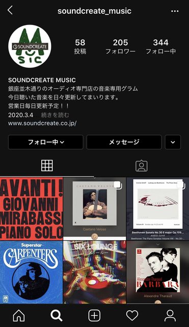 サウンドクリエイトの音楽専用インスタグラム。ジャケ写と一緒の一言コメントが楽しい!