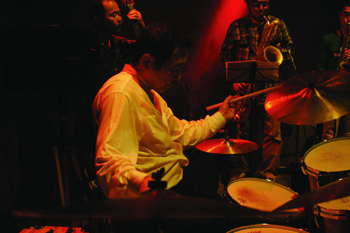 最近のピットインのステージ。レギュラーメンバーで演奏をする森山威男さん。そのドラミングは、心にスシッとくる独特の味がある。