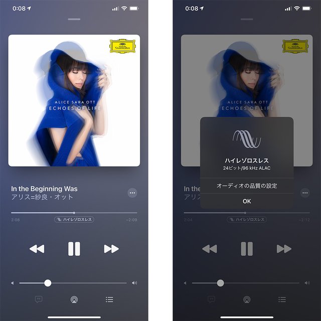 ハイレゾロスレスは96kHz/24bitの音質。ファイル形式はALACとなる