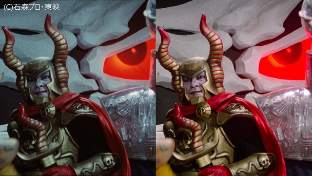 『仮面ライダー 8人ライダーVS銀河王』(1980年3月公開)のリマスター比較シーン