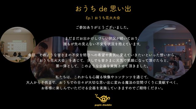 参加したユーザーから共感を集めた“おうちde思い出”への思いを綴ったpopInからのメッセージ。