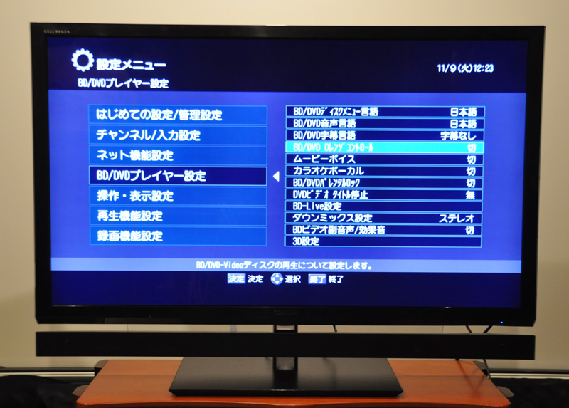 RD-X10のメニュー画面。「BD/DVDプレイヤー設定」から「BD/DVD Dレンジコントロール」に入る