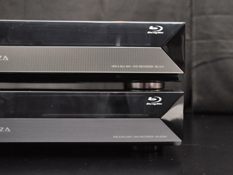 フロントパネルをRD-X10(写真上)とRD-BZ800(写真下)とで比較したイメージ。エンジェル・デメルのパーツの質感がお分かりいただけるだろうか