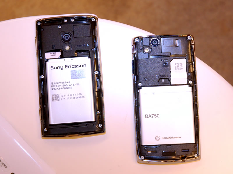 背面ケースを開けたところ。左は「Xperia SO-01B」。ここを見るだけでも内部レイアウトが変更されていることがうかがえる