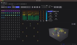 Dolby Atmosは前後左右に高さ方向を加えた三次元のフィールドに音声を配置していく(画像はPro toolsのDolby Atmos Renderer画面)