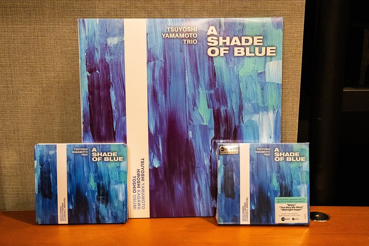 『A SHADE OF BLUE』も複数フォーマットで発売中。レコードは2枚組(中央)、SACDハイブリッド盤(左)とMQA-CD(右)の3バージョンが現在発売されている。春には映像ディスクとしてもリリース予定