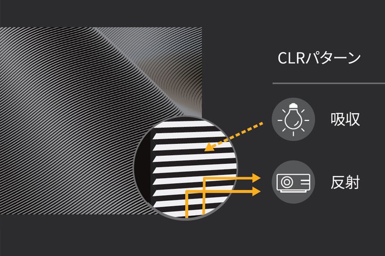 表面に歪みのない生地とノコギリ状の光学構造を採用し、投写光以外の光を吸収するという。これによってコントラスト比を高め、暗部描写と鮮明感を向上させた