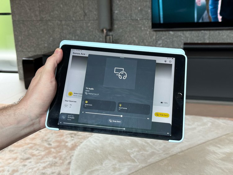 ドルビーアトモスによるイマーシブサウンドもヘッドホンでリアルに再現する。機器のセットアップにはSonosのモバイルアプリを使用する