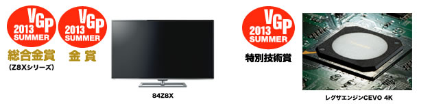“第二世代”4Kレグザ「Z8X」シリーズで、VGP2013 SUMMER総合金賞を受賞した(写真は84型「84Z8X」)。