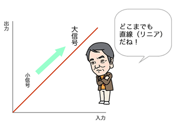 増幅素子といえばトランジスタや真空管ですね。ここでは主にアンプのファイナル段(最終段)に用いる増幅素子がどんな風に働くのか、考えましょう。「そりゃもう、小さい信号から大信号まで直線比例で増幅するんでしょ?」。はいそのとおり!と言いたいところですが、実は違います。