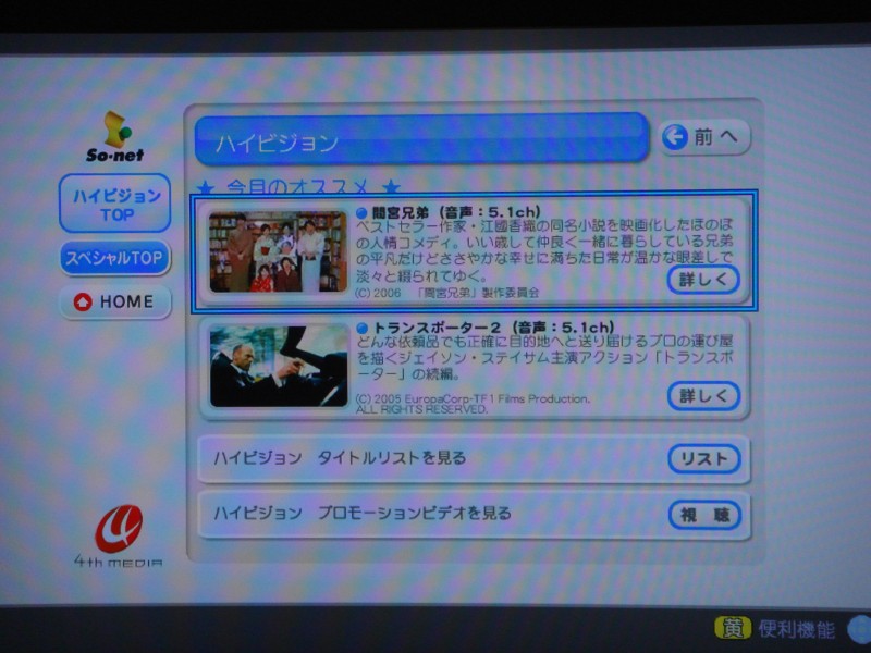 その後、4th MEDIAを提供する「ぷららネットワークス」へ連絡する機会があり、ついでにフルHD配信について聞いてみると、いま僕が使っているREGZA 37Z2000シリーズならフルHDでの映像配信を利用できるとのことだった。