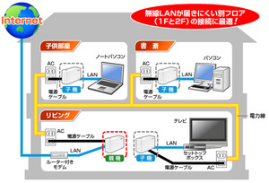 PLCアダプターは、乱暴な言い方をすれば親機と子機を使ってインターネットの情報を電気信号に混ぜ込み、パソコンやルーターの近くで再度互いを分離させる機能を持つ機器だ。LAN環境を構築しなくても、屋内ならば配電線を使ったインターネットを利用できるのもメリットだ。I・OデータのPLCアダプターの場合、価格はオープンだが同社直販サイトでは、スターターパックが21,000円(税込)、子機単体が13,650円(税込)で販売されている。同様にホームネットワークが構築できる機器としては、ワイヤレスなら親機となるアクセスポイントは8,000円程度、子機も10,000円程度で購入できる。今のところ価格面ではワイヤレス関連機器の方が求めやすくなっている。